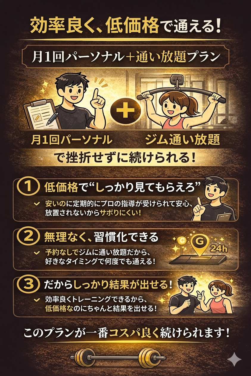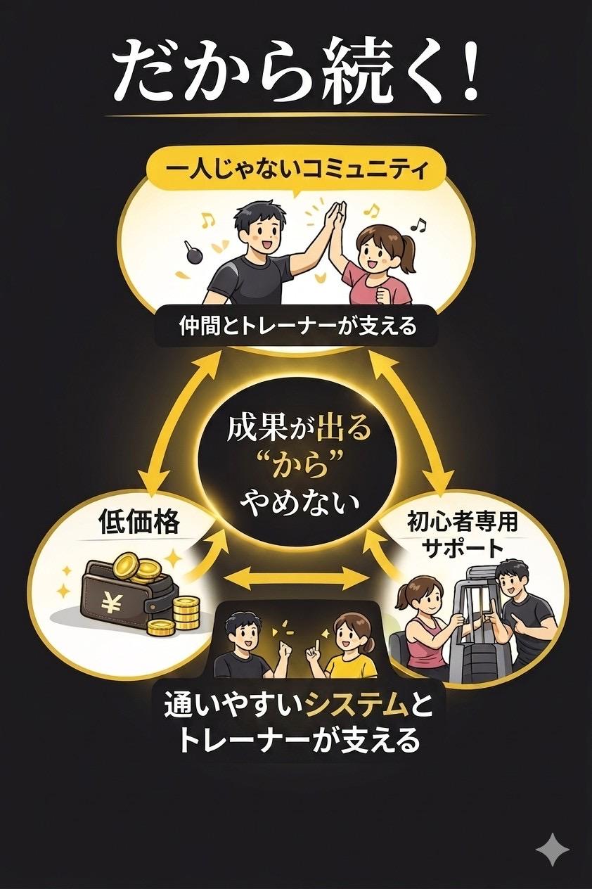 仕事や生活のリズムに合わせて、自分の体と本気で向き合いたくて通い始めました🏋️♀️マシンだけでなく、パーソナルトレーニングでフォームを細かく見てもらえるので、効かせたい部分にしっかりアプローチできている実感があります✨ パーソナル以外にもストレッチルームやトレーニングルームなども色々とあります。ジム初心者の女性でも安心❣️体が変わると、心まで整う‼️『習慣の質』を上げたい人には本当におすすめのジムです💪これからもよろしくお願いいたします😌